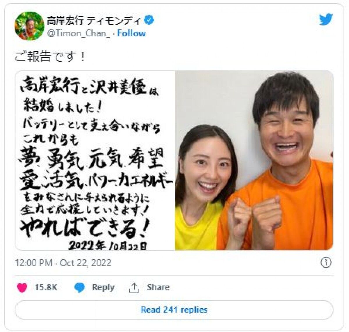@junglemiozやればできる! 沢井&ティモンディ高岸 第1子誕生 #Yahooニュース news.yahoo.co.jp/pickup/6519569