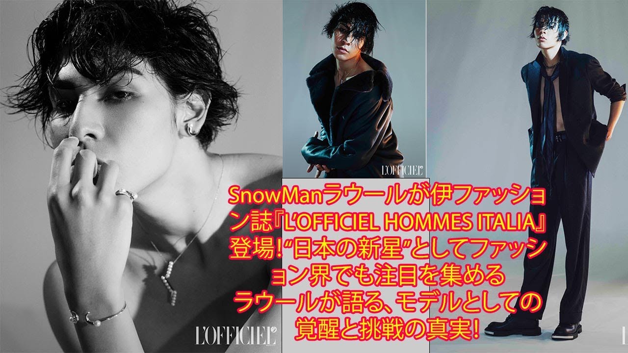 | Snow Manラウールが伊ファッション誌『L’OFFICIEL HOMMES ITALIA』登場!“日本の新星”としてファッション界でも注目を集める …行っているラウールが、メンズファッション誌『L’OFFICIEL HOMMES ITALIA』WEBサイトおよび公式SNSに登場。ラウールのモデルショットが公開された。 (出典:) |